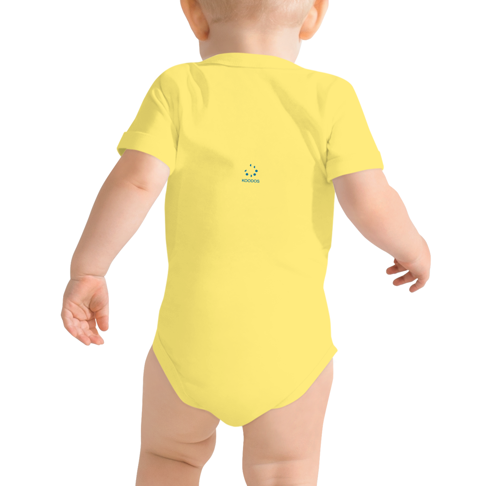 Dress your baby to the nines with this 100% cotton one piece. It has three snap leg closure for easy changing, a comfortable envelope neckline, and a beautiful print that's bound to get the baby all happy and giggling.